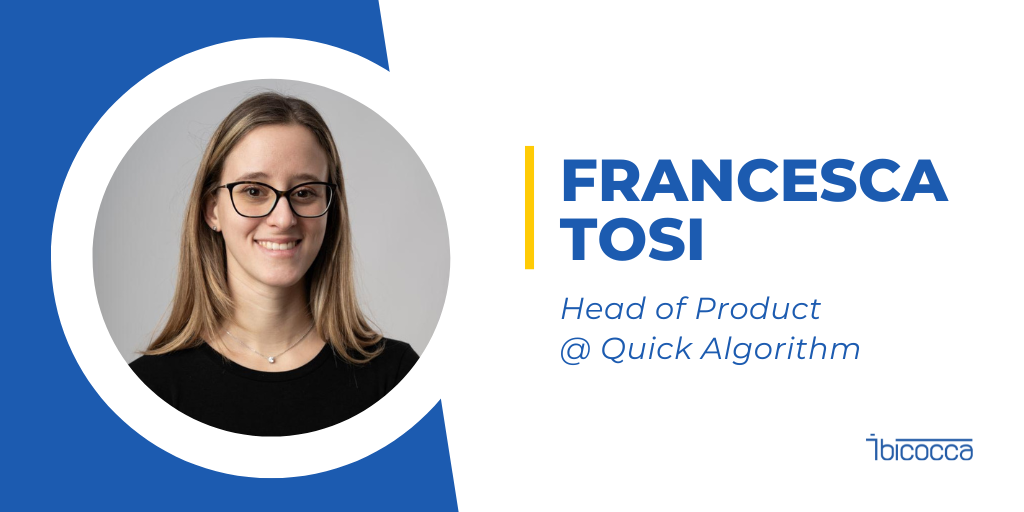 Francesca Tosi è Head of Product e Membro del Consiglio di Amministrazione di Quick Algorithm, una startup SaaS B2B di Milano che integra sensori IoT e un potente sistema di analisi dei dati basato sull’intelligenza artificiale per monitorare lo stato di salute di macchinari industriali. Entrata in azienda nel 2019, poco dopo la fondazione, ha svolto un ruolo chiave nella crescita e strategia aziendale e nel coordinamento dello sviluppo del prodotto. La sua esperienza include ruoli in strategia e gestione operativa, product management, e gestione di progetti su AI e automazione dati. Francesca ha conseguito un Master in Economics and Management of Innovation and Technology presso l’Università Bocconi e ha ottenuto un diploma in Smart Manufacturing presso l’MIT Professional Education di Boston.